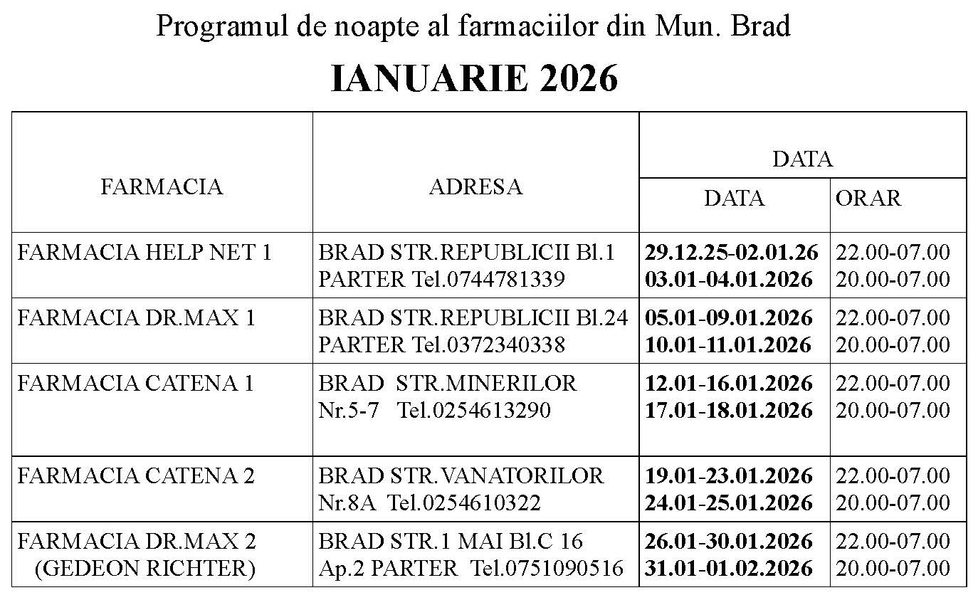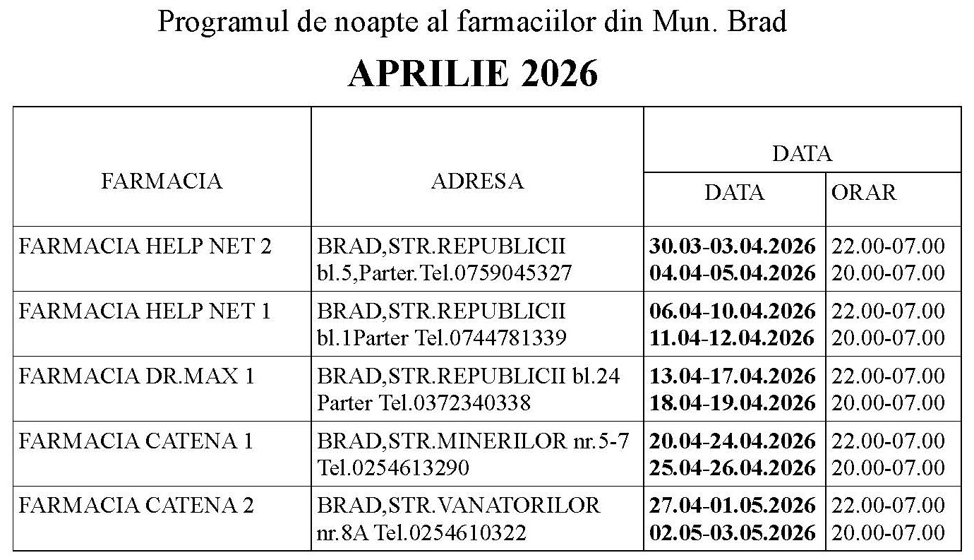 Programul de noapte al farmaciilor din Municipiul Brad
